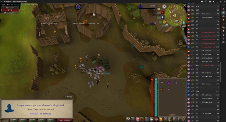 As I neared the required Nature rune amount, I went ahead and got 43 Magic by Cursing a lot of Barbarians. With 43 Magic attained, the Zamorak Mage is locked until I complete the requirements to unlock the Wilderness, and all extra runes purchased for training were dropped.