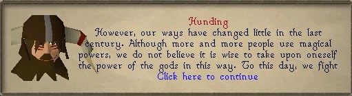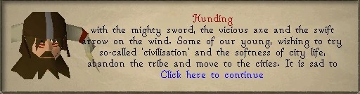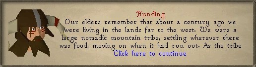 I spoke about the lore of including Barbarian Village in my regions. A member of the village, Hunding, tells you the history of the village and how the inhabitants are descendants of people who come from the mountain tribe that the citizens of Rellekka also descend from.