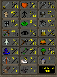 Note that I could have also gotten 96 Fishing and 76 Strength to barbarian fish the shark, or even figured out how to kill Waterfiends with what limited supplies and gear I had, which would definitely have made for a different interesting story.