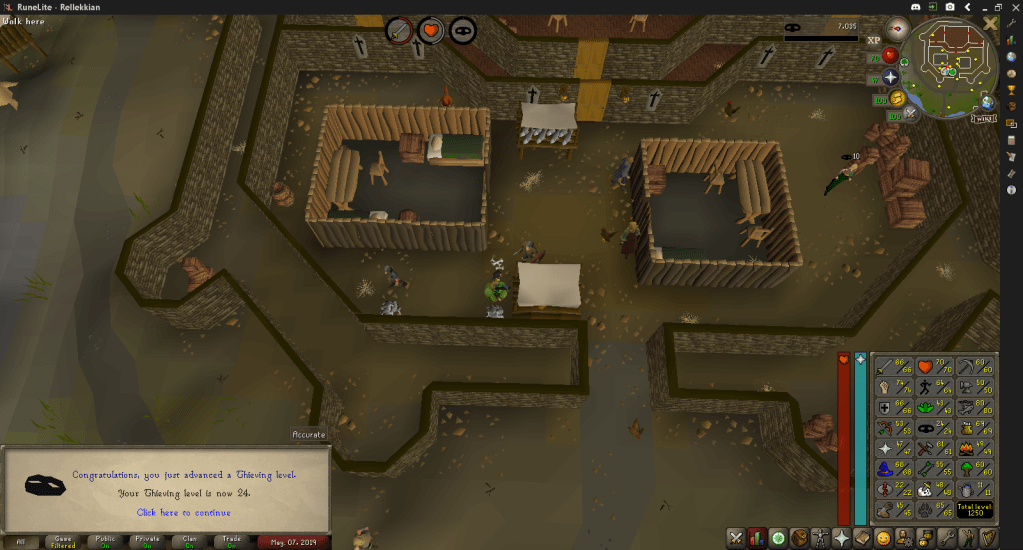 After that Herblore level I was close to a milestone so I knocked out some quick (24 Thieving) levels to hit 1250 Total.
