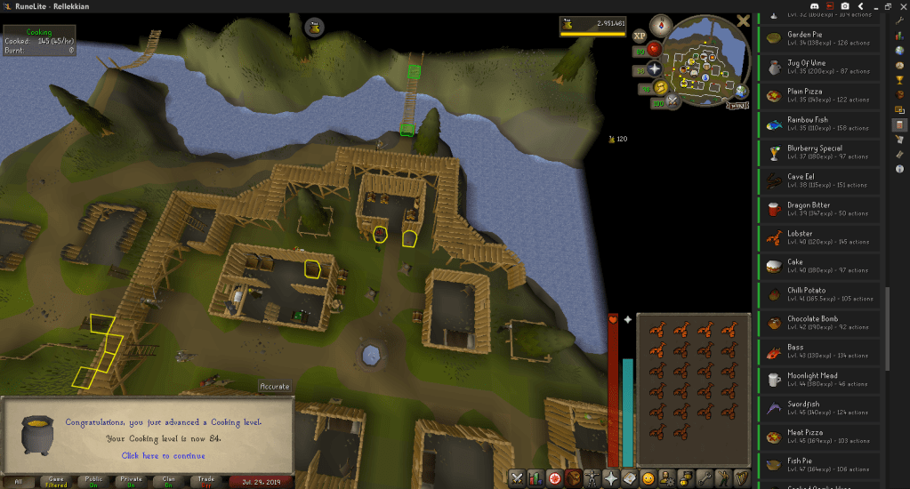 I was running low on food so I went and cooked the Sharks I had fished a while ago, and got 84 Cooking with that and a few other fish.