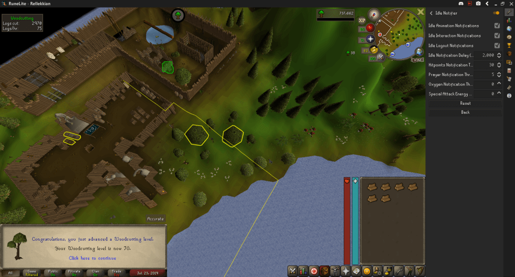 I did some AFKing and gathered a few Oak Logs in preparation for whenever I unlock Plank Make and hit 70 Woodcutting.