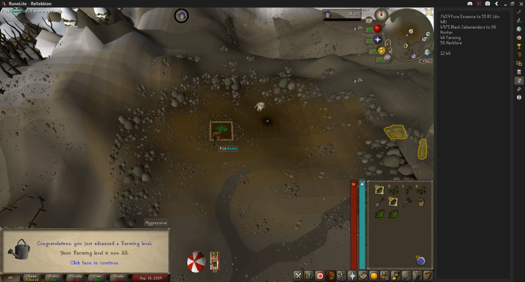 Once I got back to OSRS I promptly completed My Arm’s Big Adventure, hitting 27 Farming while My Arm was harvesting the Goutweed at the end of the quest (Congratulations to My Arm as well!), then 30 Farming from the actual quest rewards, and I’m ending the period with 33 Farming, potentially 34.