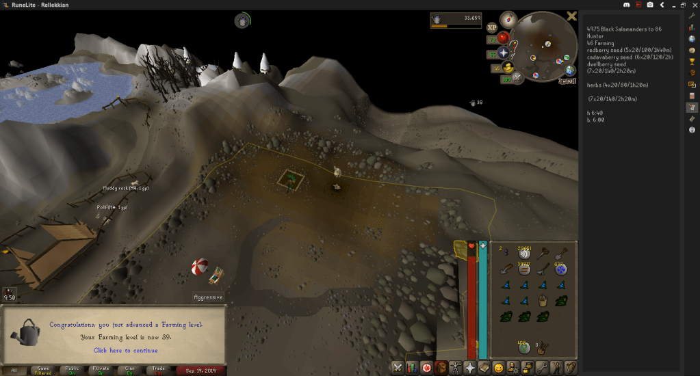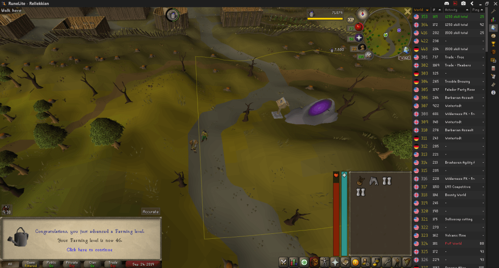 At this point in the Farming grind I decided to get to at least 15k XP away from 46, which would allow me to use the Fremennik and Wilderness Medium Diary lamps to finish the grind up in time to complete The Fremennik Exiles on release.