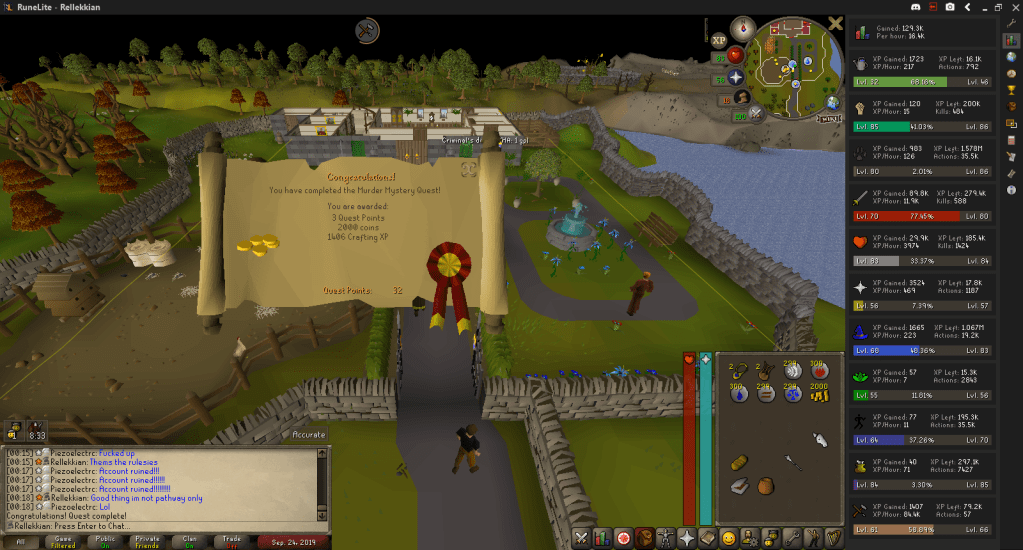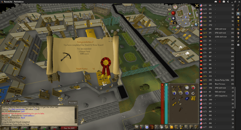 Once I got to that, I started all the quests I would need for the Diaries and Heroes’ Quest. My friend Zoe accompanied me to perform her duties as The Exception Police and remind me that my account was ruined.