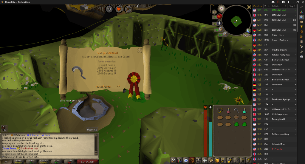 More integrity was lost when I forgot to get the Pure Essence required for Priest in Peril, so I quickly mined it in the Varrock essence mine, and then completed Priest in Peril, followed by Nature Spirit.