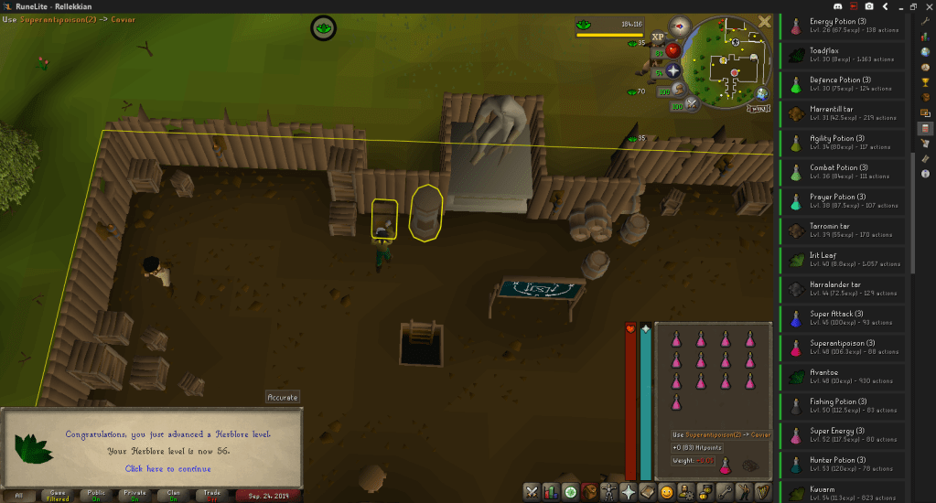 Forgot to hit 56 Herblore before all this so, using the herbs I gathered and grew, I quickly knocked that out.