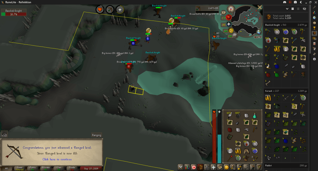 While farming Basilisk Knights, I hit 84 Hitpoints and 83 Ranged.