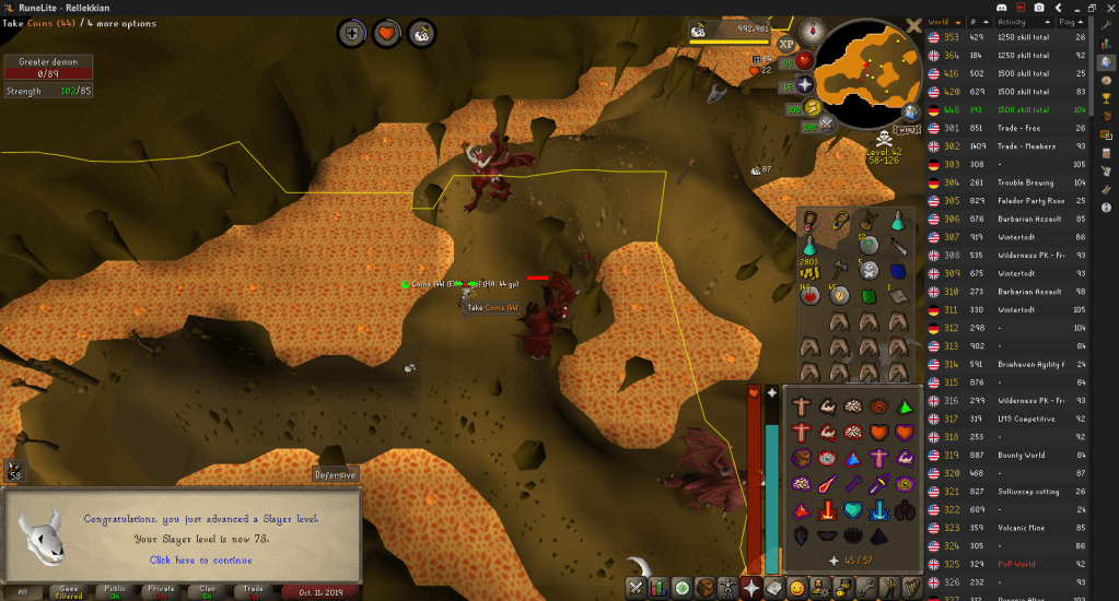 I also hit 73 Slayer and then ended at 75 Defence. There’s also no screenshot and I can’t quite remember when/where I got it, but I hit 85 Hitpoints this period (likely during week 27), too.