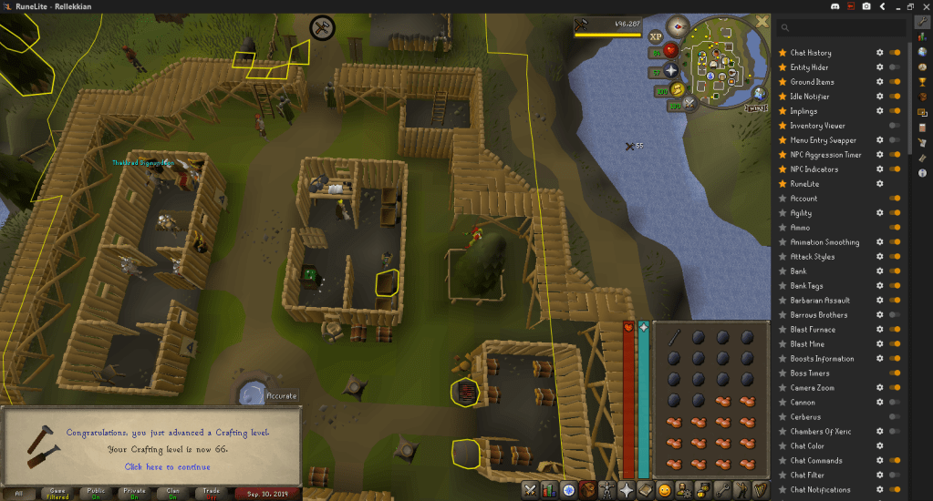With the Agility XP reward from Royal Trouble, I was 101 XP from a level, so I ran a lap of the Barbarian Agility Course to hit 67 Agility.