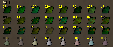 Between past grinding efforts, Farming runs, and Kingdom, I have a lot of herbs, and will continue to be getting herbs, due to their usefulness. As with all ironmen, secondaries are the real problem and of course more so for me, being area restricted.