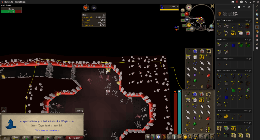 The core thing I’ll do when not Thieving will probably be killing Kurasks, since they give me money, noted Big Bones, which feed into the other AFK task, and other useful things. With the Herb Sack update that allows you to open the sack to auto-store herbs on pickup, Kurasks are even better to kill now.