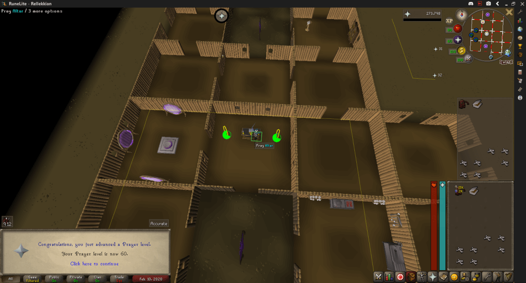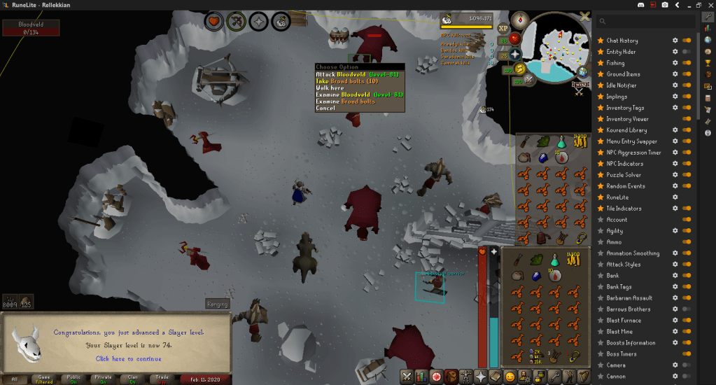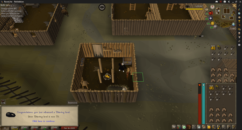 Luckily I had to watch my dog for the weekend and she doesn’t like to behave in my room so I hung out with her elsewhere in the house and slogged through the levels on my tablet. I did stop before 75 and got it on my PC, so I could get Runelite to take a screenshot for me.