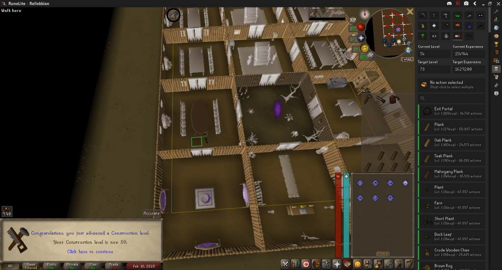 For now, I’ll mostly be doing Slayer and working on earning some more cash to hit 65 Construction (To boost to 67) so I can create the Lecturn that’ll allow me to make Teleport to House tabs, unlocking another (and fast! Lyres drop you near the house portal but the animation is pretty slow) one-click teleport and another AFK training method.