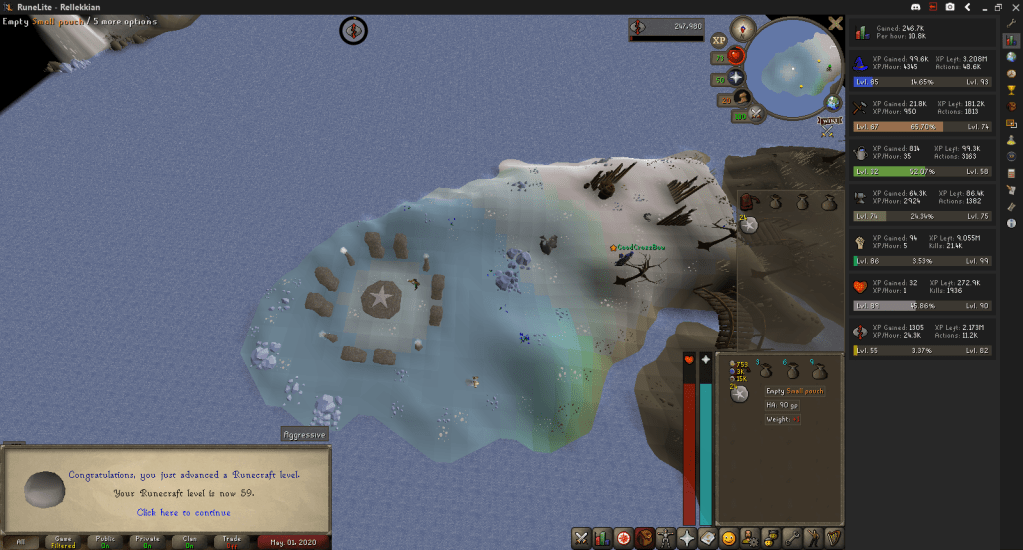 Ended week 47 with 59 Runecrafting. I did continue training after that but the next few levels were gained after midnight on the 2nd, which is the start of week 48.