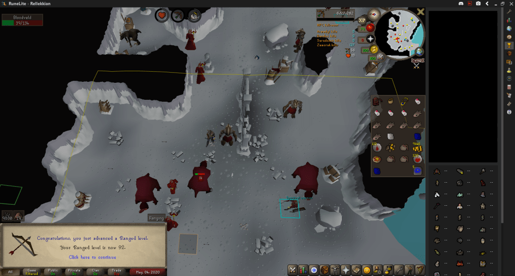 With that goal out of the way, I went back to Slayer, hitting 92 Ranged on a Bloodveld Task.