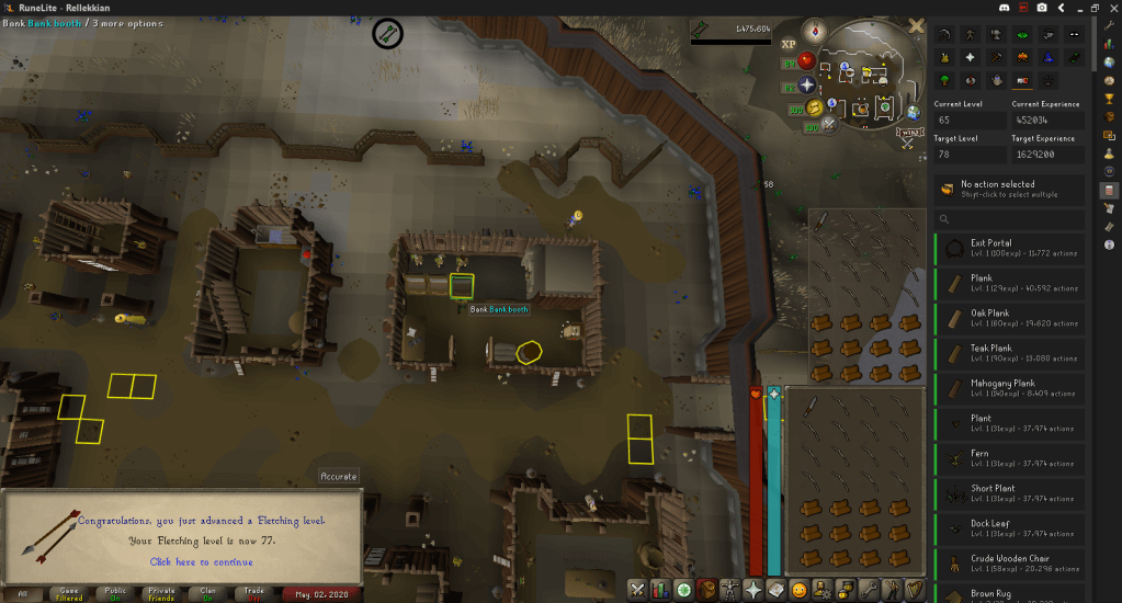 Instead of burning Maple Logs, I fletched them, to hit 77 Fletching.