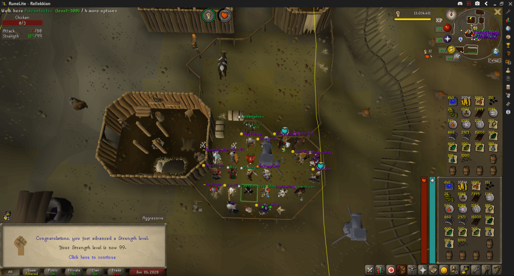 I opened up this log period continuing my 99 Strength grind, ending with 94 Hitpoints and 98 Strength during week one.