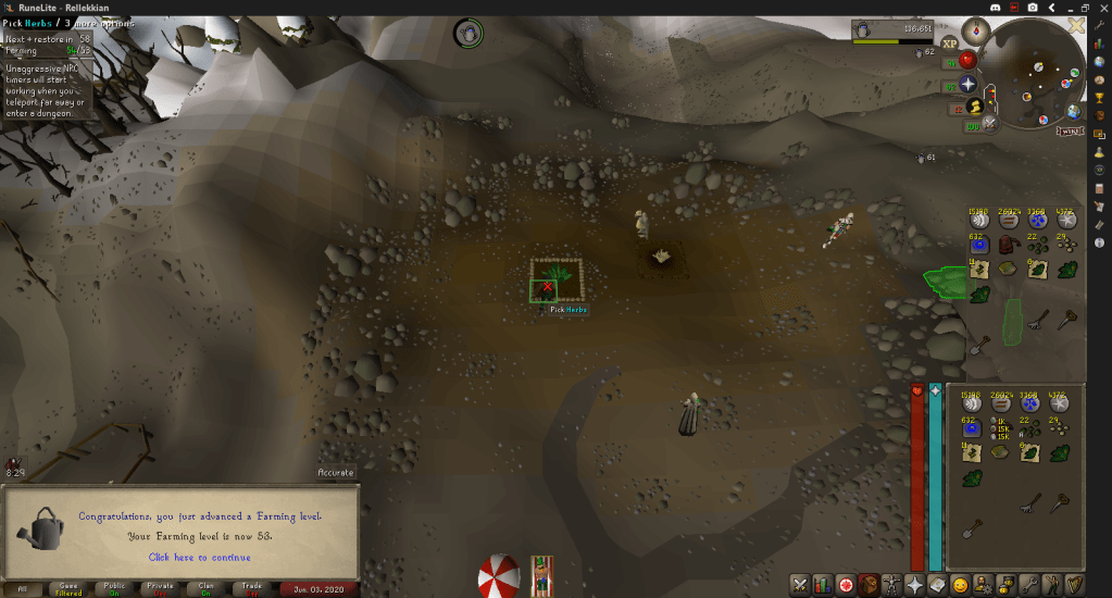 I also hit 53 Farming, a great side effect of passive play is that I can drop what I’m doing and go on farm runs when the patches are ready. Shoutout to Runelite’s Farming timers!