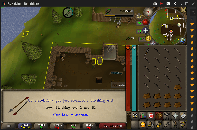 As a final timekiller, I fletched some Maple Longbows hitting 79 Fletching, initially working towards the goal of 85.