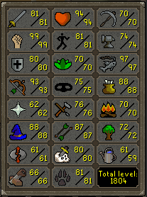From that, I hit 97 Fishing. I also hit 1800 total level!