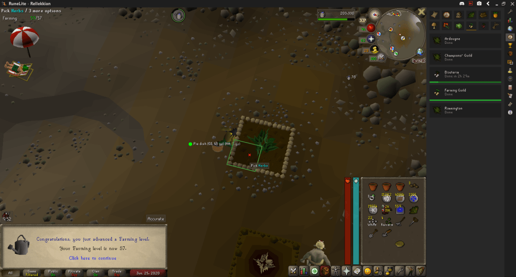 Due to the distractions I’m currently involved with, I’m pretty much just going to be camping out at the Trollheim patch and farming Snapdragon Seeds for the next few days. I expect to hit 60 Farming from this, which also puts me at 60 base stats.