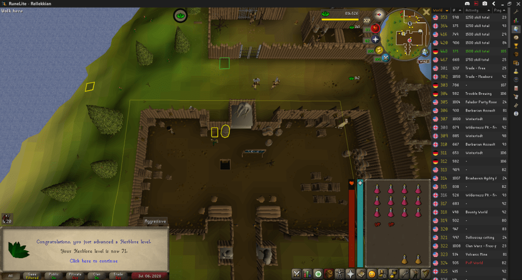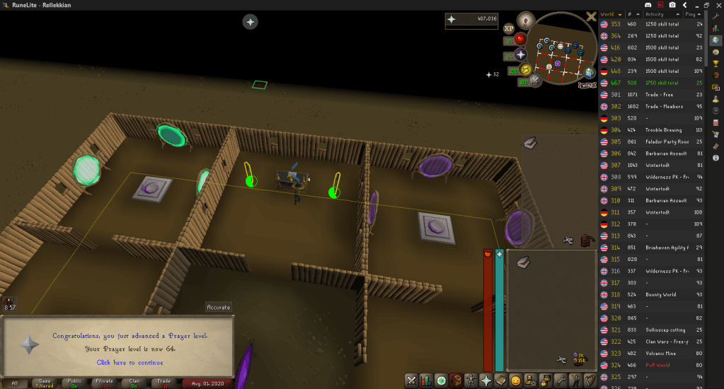 I also used my stored Big Bones to hit 64 Prayer, which is a new threshold for Prayer Potion restoration. I’m getting close to having 70 banked (with Dragon and Dagannoth Bones) if I were to do the Chaos Altar, so I may be doing that soon.