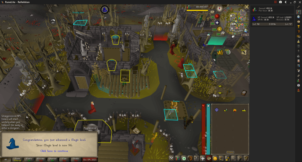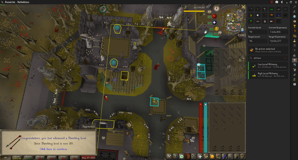 Just before writing this, I finished alching everything shown. I hit 96 Magic near the end of it, as planned. 96 Magic unlocks Spellbook Swap, allowing me to do something I’ve talked about before.