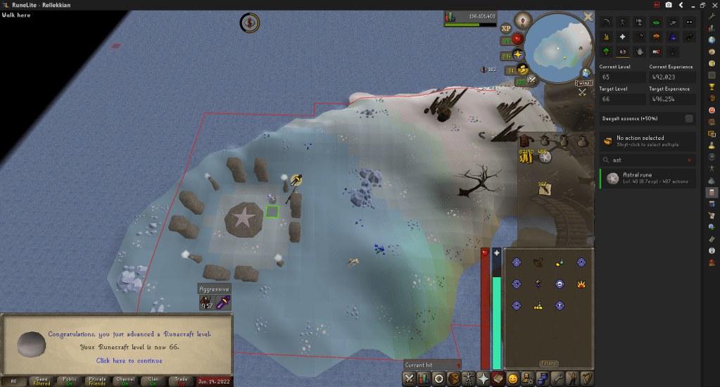 Burning through those acquired materials, I hit 66 Runecrafting.