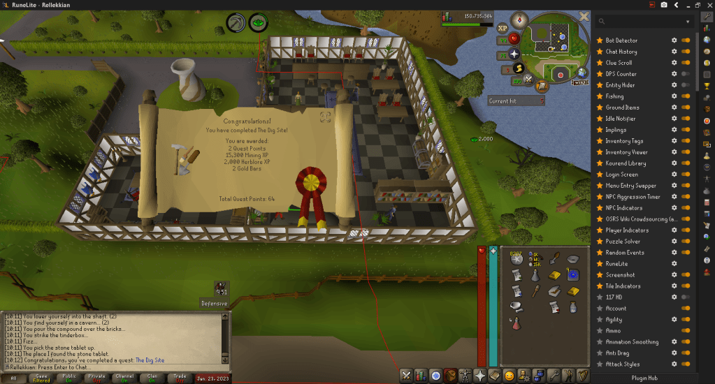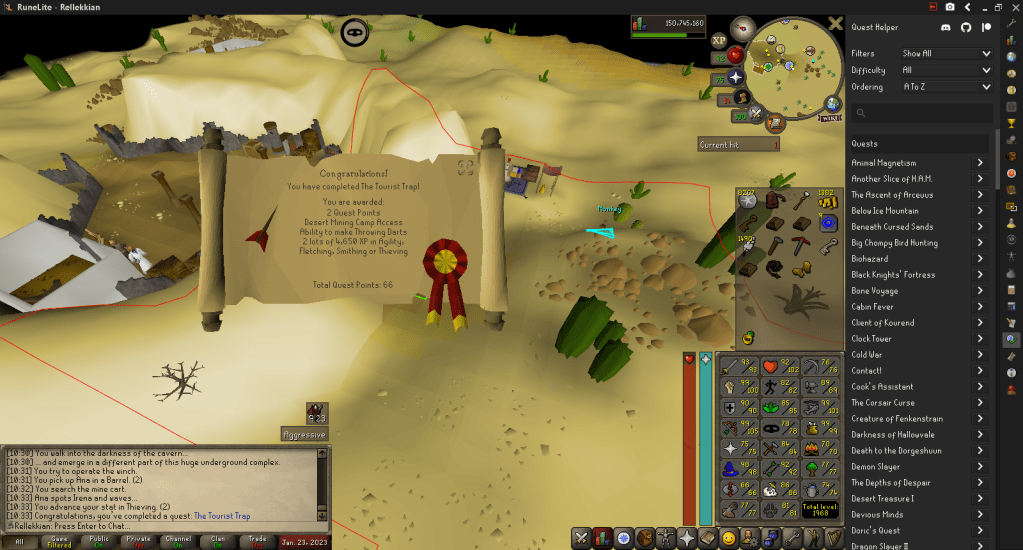With that, I needed to do most of the prerequisite quests, those being Waterfall Quest, Temple of Ikov, Dig Site, and Tourist Trap.