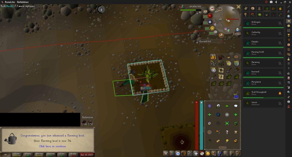 Didn’t quite latch on to the game again, and Path of Exile happened, and I moved to a new home, so progress was slow. Near the beginning of the year I entrenched myself at the farming patches and hit 74 Farming.