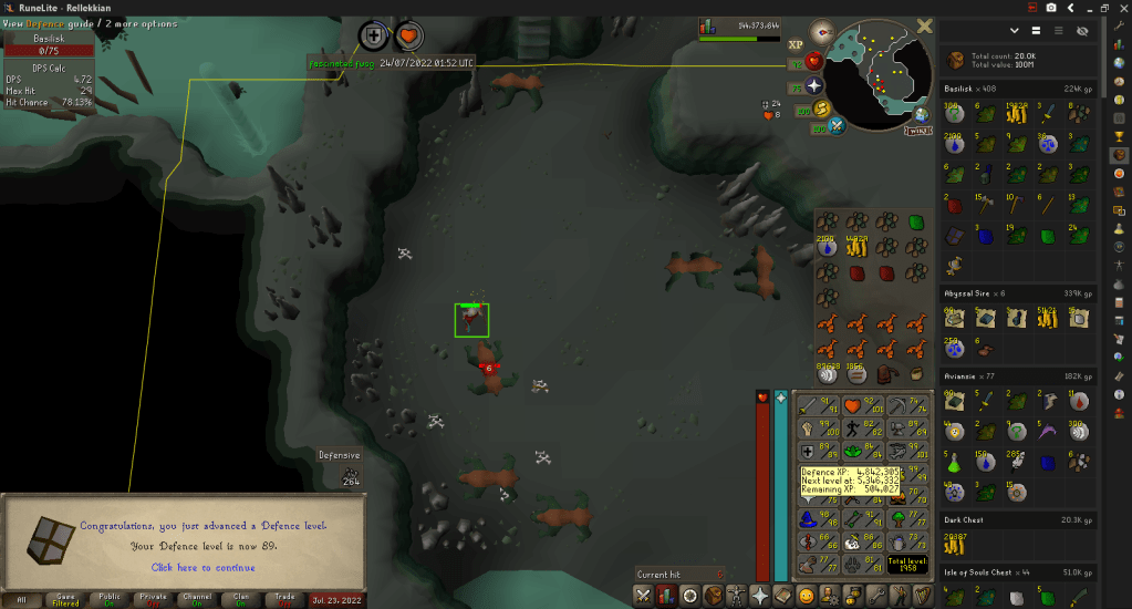 For a bingo I tried to participate in, I was going for wildy ward pieces but only got a Fedora, but it is a collection slot in my region so that was a plus. I was also going for Slayer Monster heads and hit 89 Defence hunting Basilisks. A bit later, I hit 90 Defence at Kurasks.