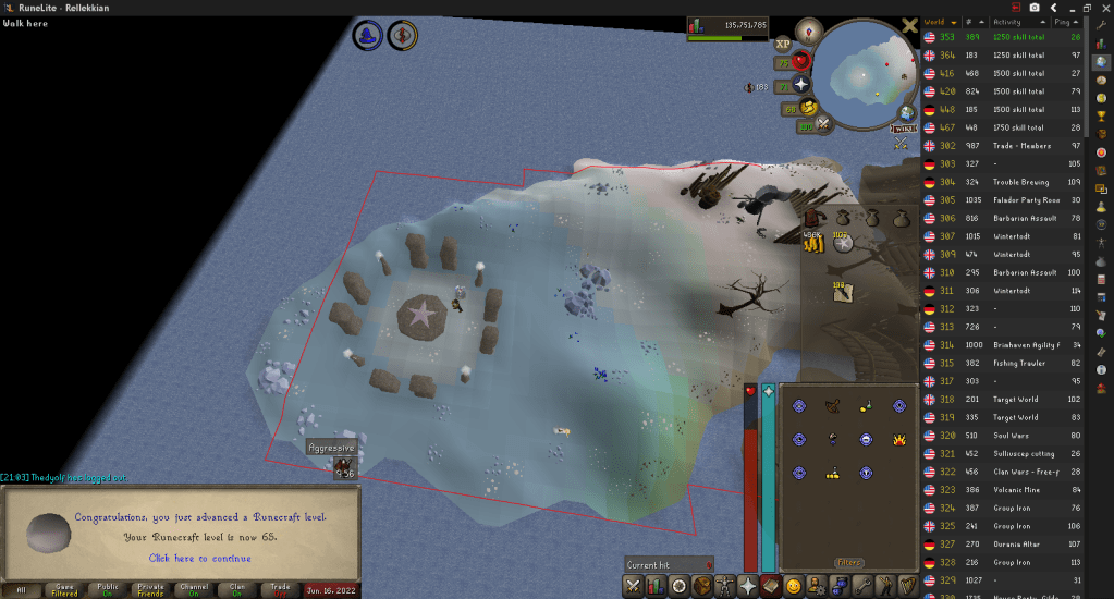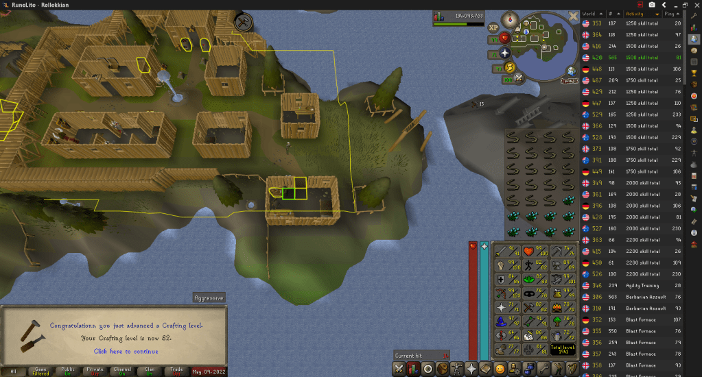 Not really wanting to hunt chins and deal with Kree at the time, alongside a promotion/move to full time at work, I burnt out a bit and swapped to doing some total level/supply grinding.