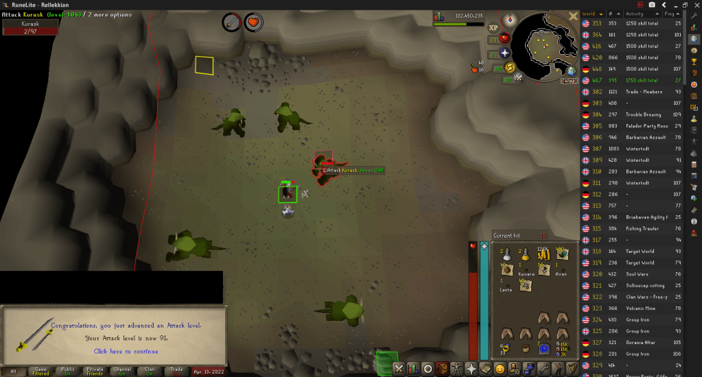 Trying to regain my motivation still, I was killing some Kurasks for supplies and hit 91 Attack.